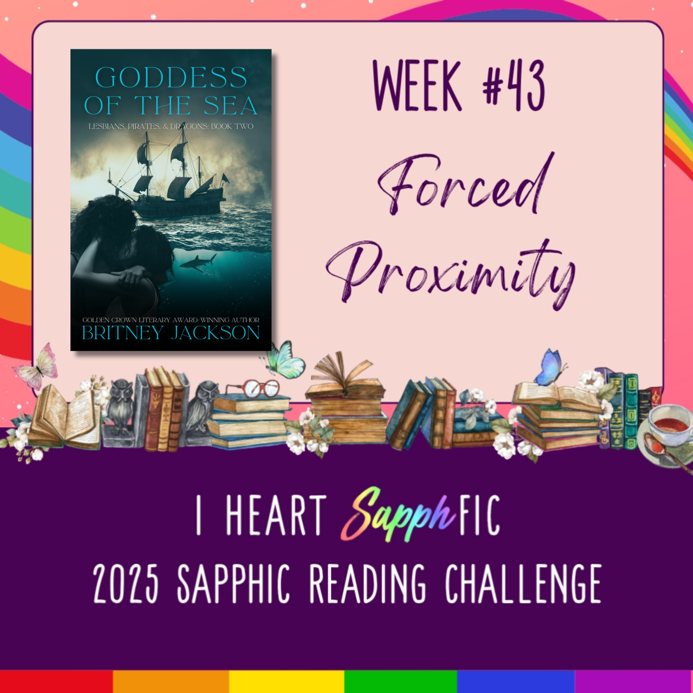 Goddess of the Sea (Lesbians, Pirates, & Dragons: Book 2) is featured in this week’s I Heart SapphFic Reading Challenge category, “Forced Proximity.” 💙